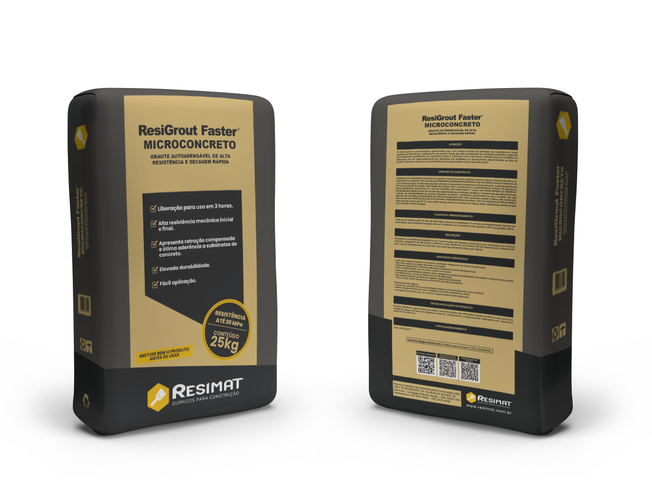 ResiGrout-Faster microconcreto estrutural é um microconcreto pré-dosado, composto de cimento Portland, agregados com granulometria selecionada e aditivos especiais. Especialmente desenvolvido para grauteamento com espessuras de até 100 mm em áreas de difícil adensamento onde seja requerida rápida liberação da obra, graças à alta fluidez e à sua secagem ultra rápida a sua composição elaborada faz do RESIGROUT FASTER um microconcreto de alto desempenho, com elevada resistência inicial e final e liberação rápida, garantido qualidade e segurança para sua obra.